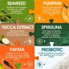 1.our 11 in one probiotics for dogs & puppies contain: 6 strains probiotic blend ( 1 billion/cfu), enzyme blend, fungal pancreatin, papaya, pumpkin, seaweed, msm, fennel seed, spirulina, yucca which help control seasonal allergies,itchy skin, support digestive and immune system.